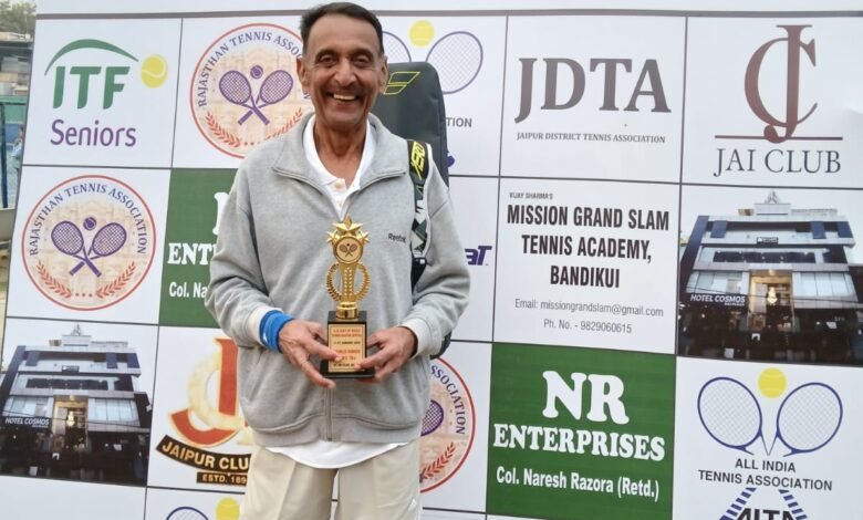 फालना , उम्र और अपेक्षाओं को पीछे छोड़ते हुए उदयपुर के ठा. राजेन्द्र सिंह जी खुडाला ने 17 से 21 जनवरी 2026 तक जय क्लब, जयपुर में आयोजित ओ. एन. दीक्षित आईटीएफ वर्ल्ड टेनिस मास्टर्स टूर्नामेंट में शानदार प्रदर्शन किया। डबल्स वर्ग में भाग लेते हुए 73 वर्षीय इस दिग्गज खिलाड़ी ने उपविजेता स्थान हासिल कर सभी का ध्यान आकर्षित किया। उनके तेज़ और सटीक सर्विसेज़ से निकले कई ऐस पॉइंट्स तथा बेहतरीन फुटवर्क और कोर्ट कवरेज ने दर्शकों को मंत्रमुग्ध कर दिया। उनका जोशीला और आक्रामक खेल युवा और उभरते टेनिस खिलाड़ियों को भी चुनौती देता नज़र आया, जिससे दर्शकों ने तालियों की गड़गड़ाहट के साथ उनके अदम्य जज़्बे,फिटनेस और खेल भावना की सराहना की इस अवसर पर राजेंद्र सिंह जी को बधाई देने वालों में सुमेर सिंह मेड़तिया,भरत त्रिवेदी,समाजसेवी अमित मेहता देवेंद्र सिदावत व्यापार संघ के अध्यक्ष श्याम सिंह जोधा,डॉ.अनंत सिंह,बंशीलाल मालवीय,अशोक बचेटा,मोहम्मद आसिफ़ आदी लोगों ने उनको बधाई देकर उज्ज्वल भविष्य की शुभकामनाएं प्रेषित की*