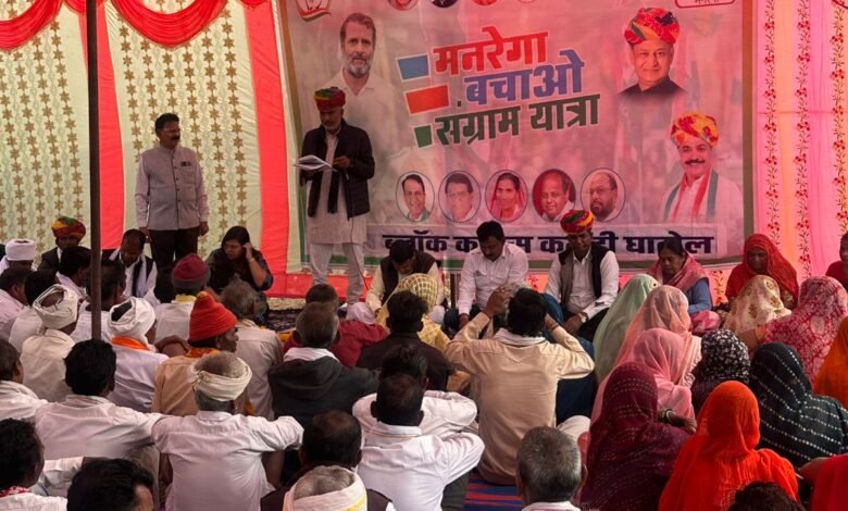 राजस्थान प्रदेश कांग्रेस कमेटी के आह्वान पर आज “मनरेगा बचाओ संग्राम जनआंदोलन” के अंतर्गत अहिंसा, संवैधानिक मूल्यों एवं काम के अधिकार की रक्षा हेतु घाटोल विधानसभा के डुगर गाम् पर कार्यक्रम आयोजित किया गया