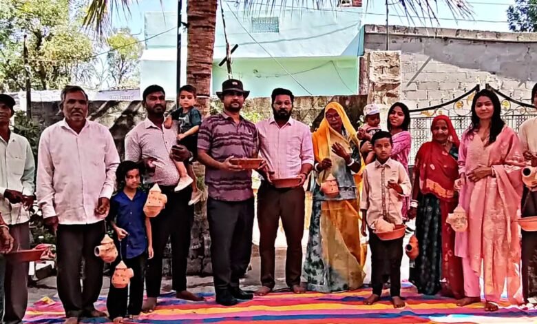 सुमेरपुर 8 मार्च,उपखंड संजय नगर में ढुंढ उत्सव पर एक व्यक्ति एक पौधा मिशन द्वारा विलुप्त गौरेया संरक्षण के लिए परींडा व गौरेया हाउस वितरण कार्यक्रम का आयोजन रखा गया। पर्यावरण प्रेमी ओमप्रकाश कुमावत की प्रेरणा से दंपति ममता -डॉ.सुरेश कुमार ने अपने पुत्र गीतार्थ सुरीम,के ढुंढ उत्सव पर 51गौरेया हाउस व परींडा वितरण कर पर्यावरण जागरुकता का संदेश दिया।डॉ.सुरेश कुमार ने बताया कि पौधा मिशन संचालक पर्यावरण प्रेमी ओमप्रकाश कुमावत हमारे लिए प्रेरणादायी है वे हमेशा पर्यावरण के प्रति आमजन को जागरुक करने के लिए तत्पर रहते हैं।कार्यक्रम में पर्यावरण प्रेमी कुमावत ने बढते हुए प्रदुषण को रोकने के लिए पेड़ पौधो पर प्रकाश डाला, वनस्पति ही जीवन है, तथा यूज वेस्ट, एनवायरनमेंट बेस्ट प्रोजेक्ट”की जानकारी दी, इस अवसर पर शांति देवी-खीमाराम मेघवाल,धनराज दादालियन,प्रकाश कुमार,वीराराम,रतन देवी,गणेश राम राठौड,एडवोकेट ममता कुमारी,योग प्रशिक्षक पुजा कुमारी, प्रियका,जितेंद कुमार,लक्ष्यराज,लियाना,निहारिका,तन्मय,सहित पर्यावरण प्रेमी उपस्थित रहे