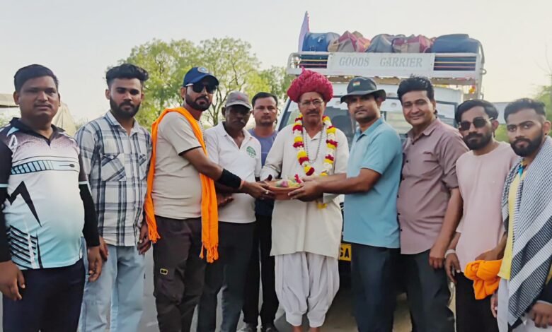 सोनाणा खेतलाजी की 45 वी पैदल यात्रा का स्वागत,गौरेया बचाओ का संदेश भक्त छगनलाल पटेल